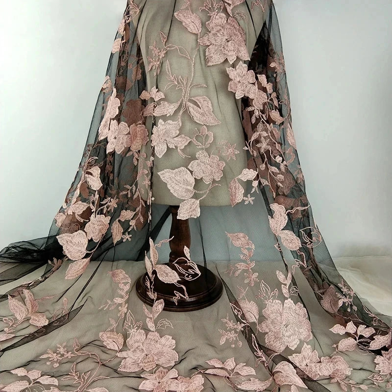 1 Yard Flowers Embroidery tulle Lace French African transparent Lace Fabric for wedding Nigerian Party dress Fashion DIY